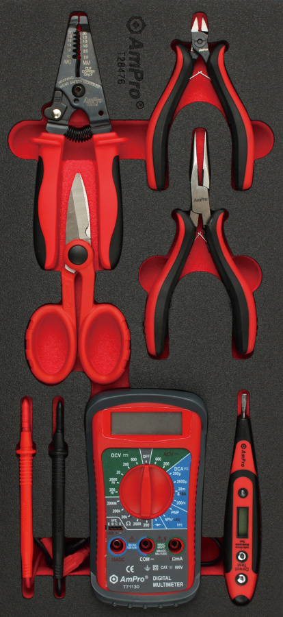 Приобрести T28476 Инструмент электрика 6пр. в мягком ложементе от компании AmPro (Тайвань) из раздела Ложементы мягкие (VA серия)