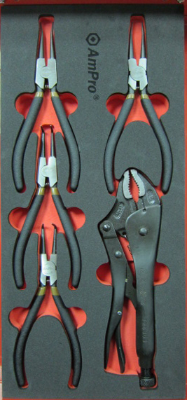 Приобрести T28944 Набор съемников стопорных колец и плоскогубцы, 5пр. в мягком ложементе от компании AmPro (Тайвань) из раздела Ложементы мягкие (VA серия)