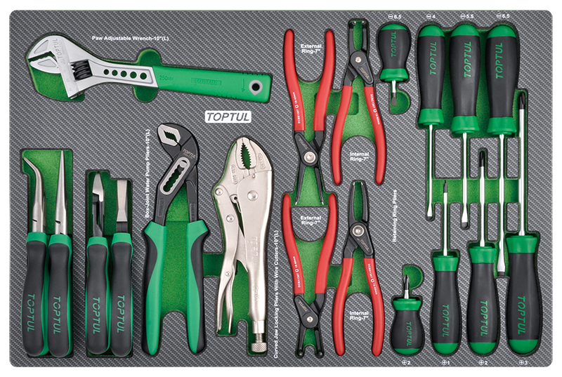 Приобрести Набор губцевого инструмента и отверток, 19 предметов в мягком ложементе (D) TOPTUL GED1912 от компании Toptul (Тайвань) из раздела Комбинированные наборы по цене 26 820 рублей.