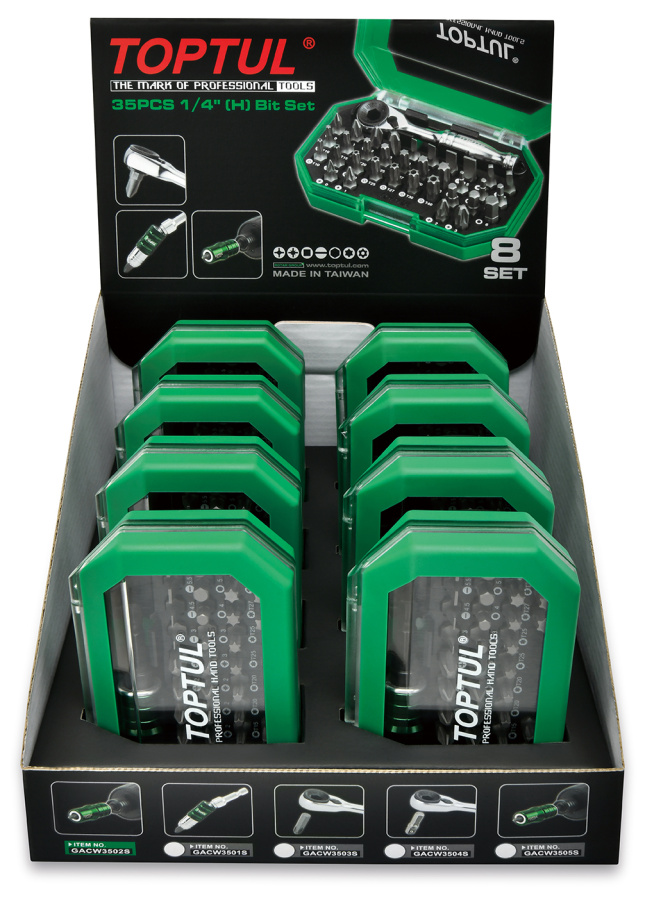 Набор бит 1/4" с трещоткой 35 пр. Display Box (8 комплектов) TOPTUL GACW3503S купить в Кирове и других городах России