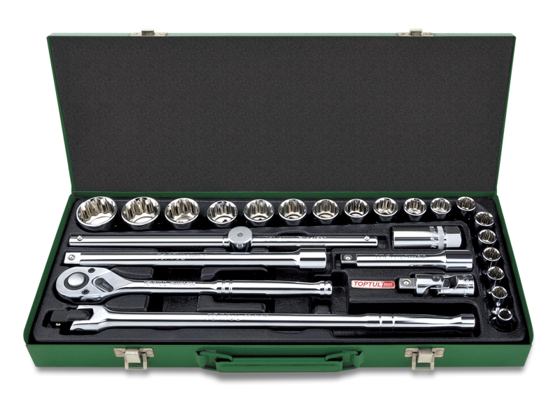 Набор головок и аксессуаров 1/2" 12-гранных дюймовых 5/16"-1-1/4", 25 предметов в метал.кейсе TOPTUL GCAD2514 купить в Кирове и других городах России