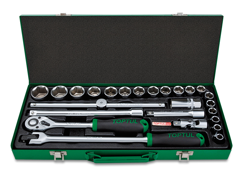 Набор головок и аксессуаров 1/2" 6-гранных 10-32мм, 25 предметов в метал.кейсе TOPTUL GCAD2511 купить в Кирове и других городах России
