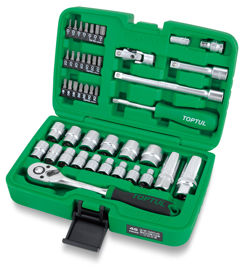 Набор головок и аксессуаров 3/8" 6-гранных 6-22 мм, 45 предметов TOPTUL GCAI4501 купить в Кирове и других городах России