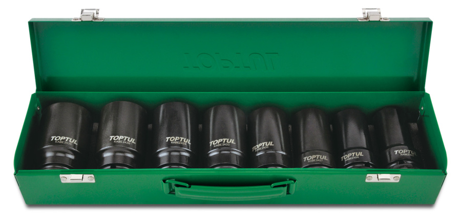 Набор глубдоких ударных головок 3/4" 22-38 мм, 8 предметов в металлическом ящике TOPTUL