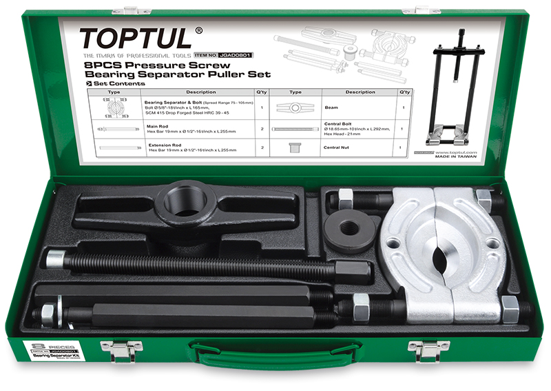 Съемник сепараторного типа 75-105 мм, 8 предметов в метал. кейсеTOPTUL